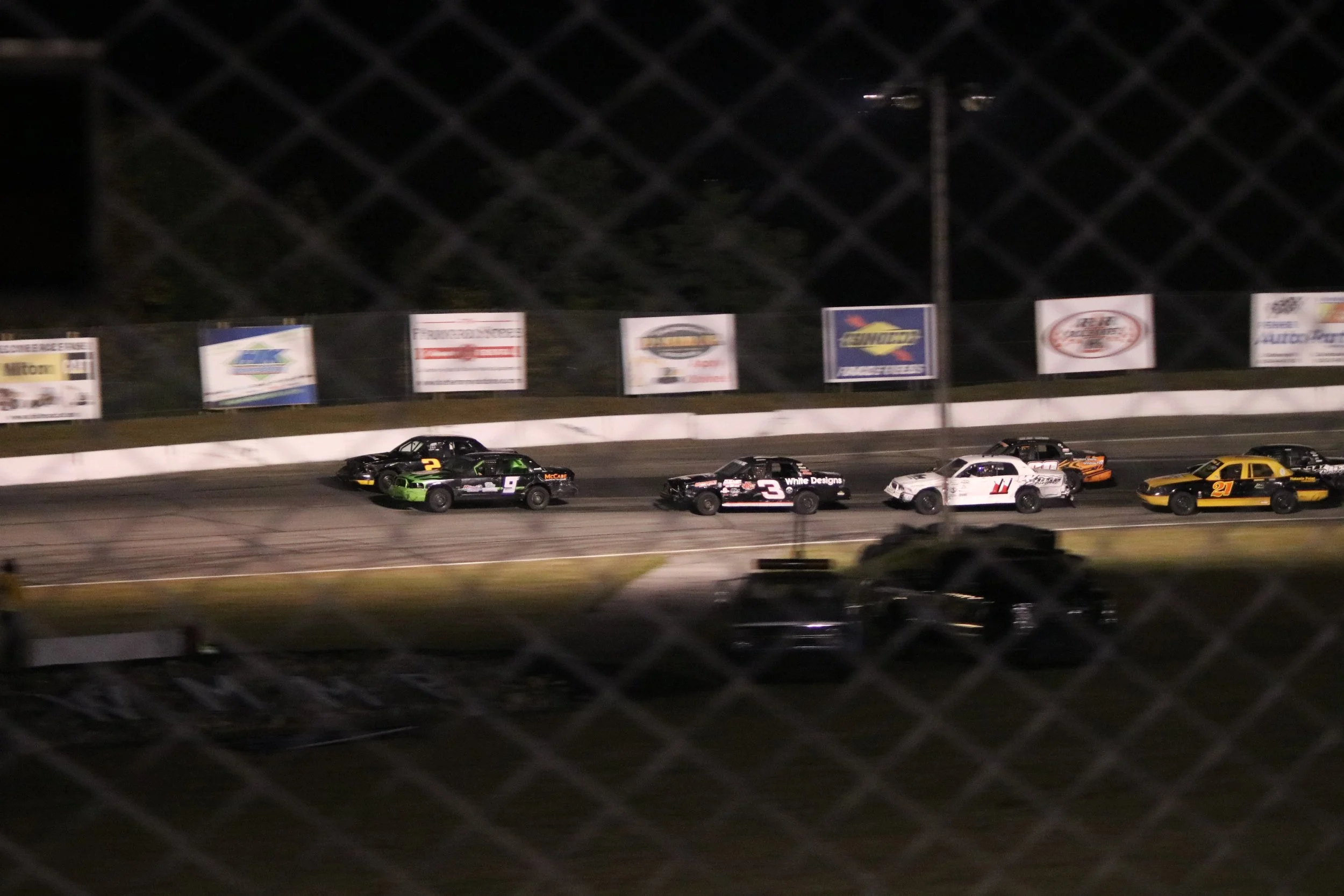The Thunderstock Crown Vics rounded out Saturday’s program with eleven cars making the inaugural trip to White Mountain Motorsports Park and ten cars starting the 40-lap feature. Tyler Moore and Karson Hewins duked it out at the front for much of their feature racing action with Moore taking the win over Hewins and Spencer Moore in the popular debut of the Crown Vics at White Mountain.
