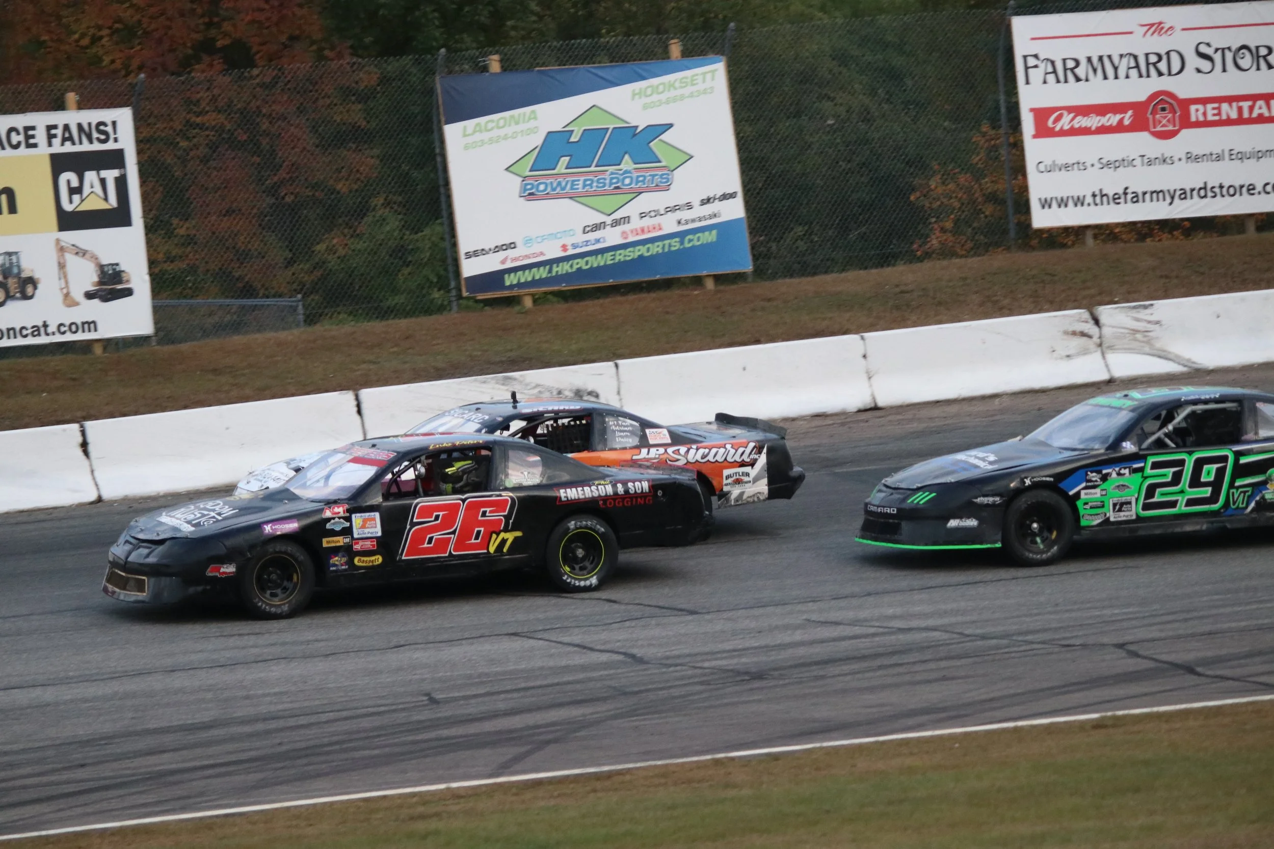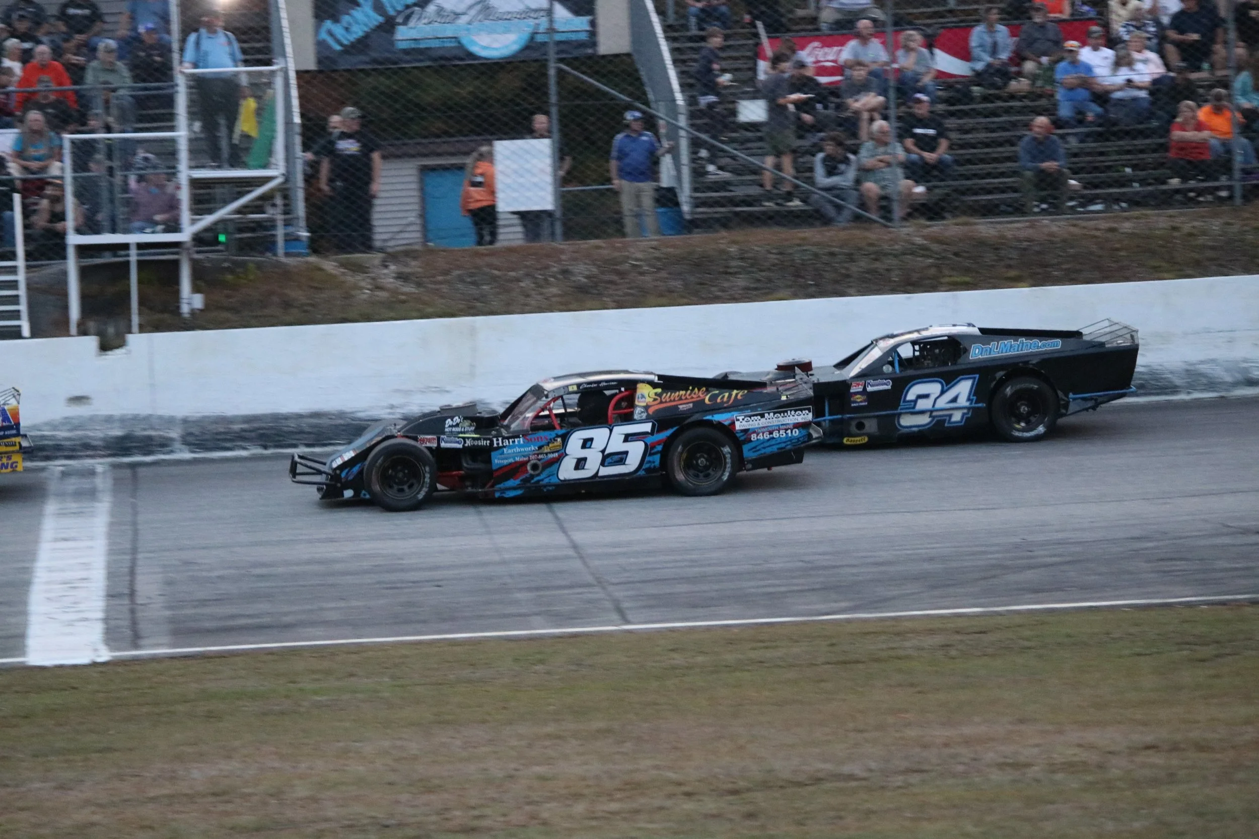 N. Woodstock, NH — With two features on the finale weekend, the Fisher Auto Parts Flying Tigers started off feature racing on Saturday with Kyle Willis and Todd Derrington duking it out side-by-side. Rookie Derrington took off with the early lead before the lap 9 caution for a stalled Mike Clark. Matt Potter would find himself in the top spot following the restart with top point chaser Luke Peters and Shane Sicard in tow on the inside line. Potter would lose the lead with a spin cycle in turn four to set up a fight between championship hopefuls Sicard and Peters over the final eight laps. It was Shane Sicard who went back-to-back for the win over Peters and Owen Cheney at the line.