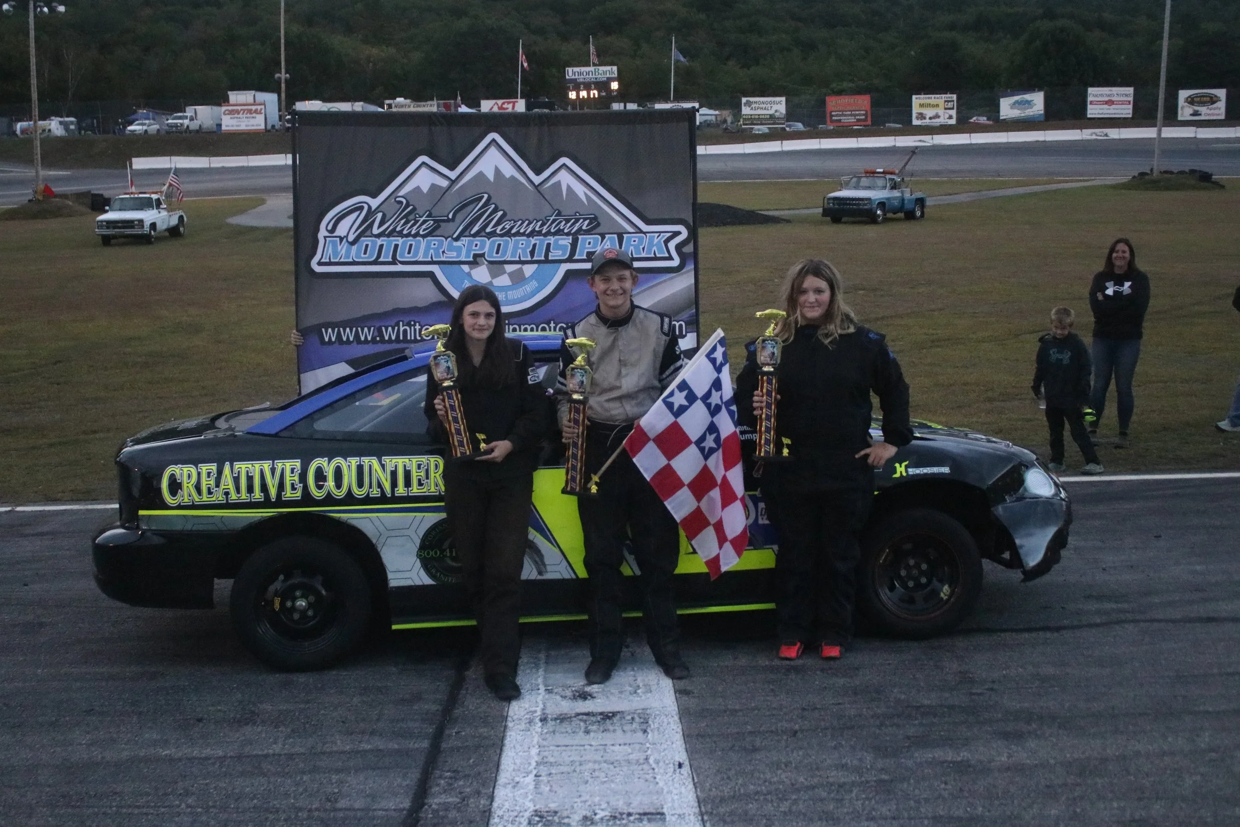 /N. Woodstock, NH — The Dad’s 4 By Tool & Supply Kids Division kicked off Saturday night’s six division card with Chloe Doyle and Bella Hamel leading the way side-by-side at the front. Several back of the pack cautions slowed the pace early but under green flag conditions Lucas Sidney and Owen Dupuis made their way through the field to pour the pressure on in the closing laps. Under the twin checkered flags Sidney took the win by a hair over Doyle with Makenzi Sicard sliding in for third to round out the opening podium.