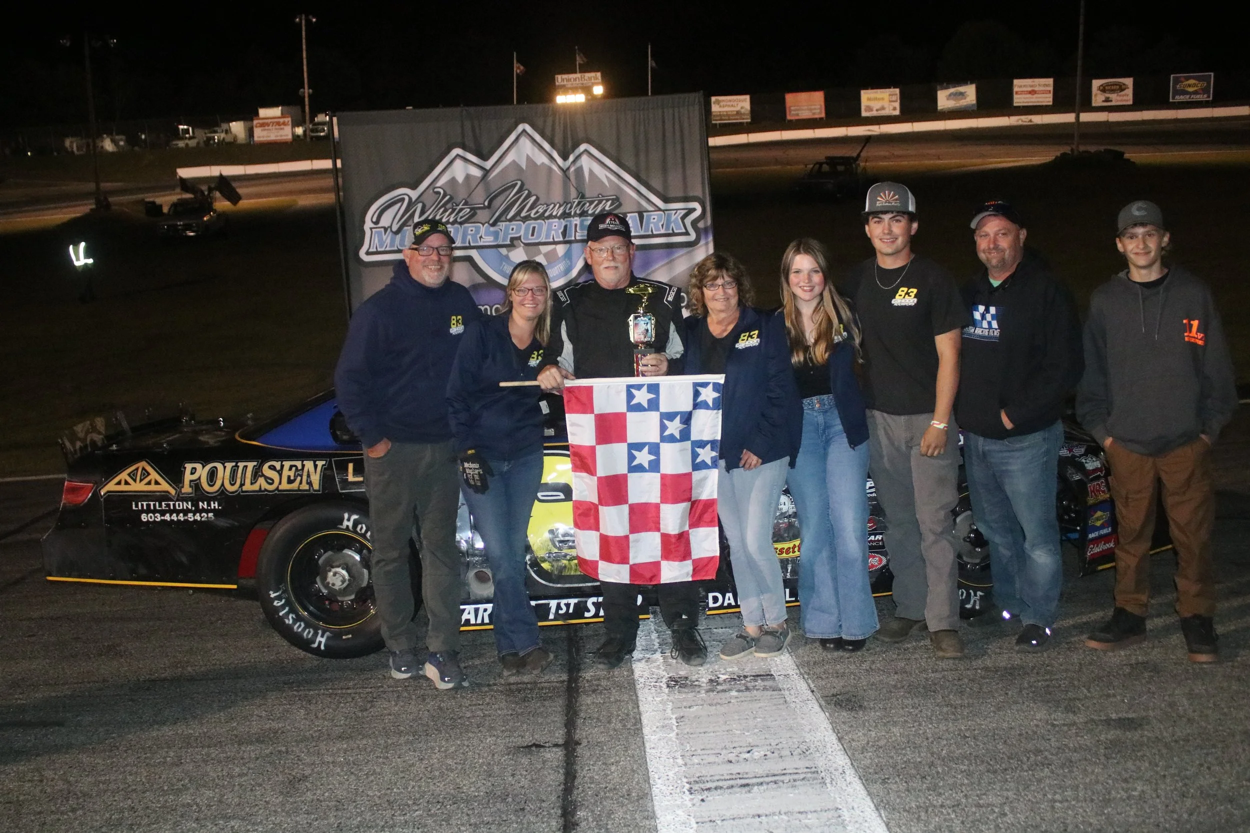 White Mountain Motorsports Park returns to racing action next Saturday, September 6 with the conclusion of the Wall’s Ford Platinum Series for the 1764 Sports Bar & Grill Late Models with the annual Leaf Peepers 100. Joining the card will be the Fisher Auto Parts Flying Tigers, Bar Harbor Bank & Trust Strictly Stock Minis and a special visit for the NELCAR Legends and Bandoleros with a 6:00pm Post Time.